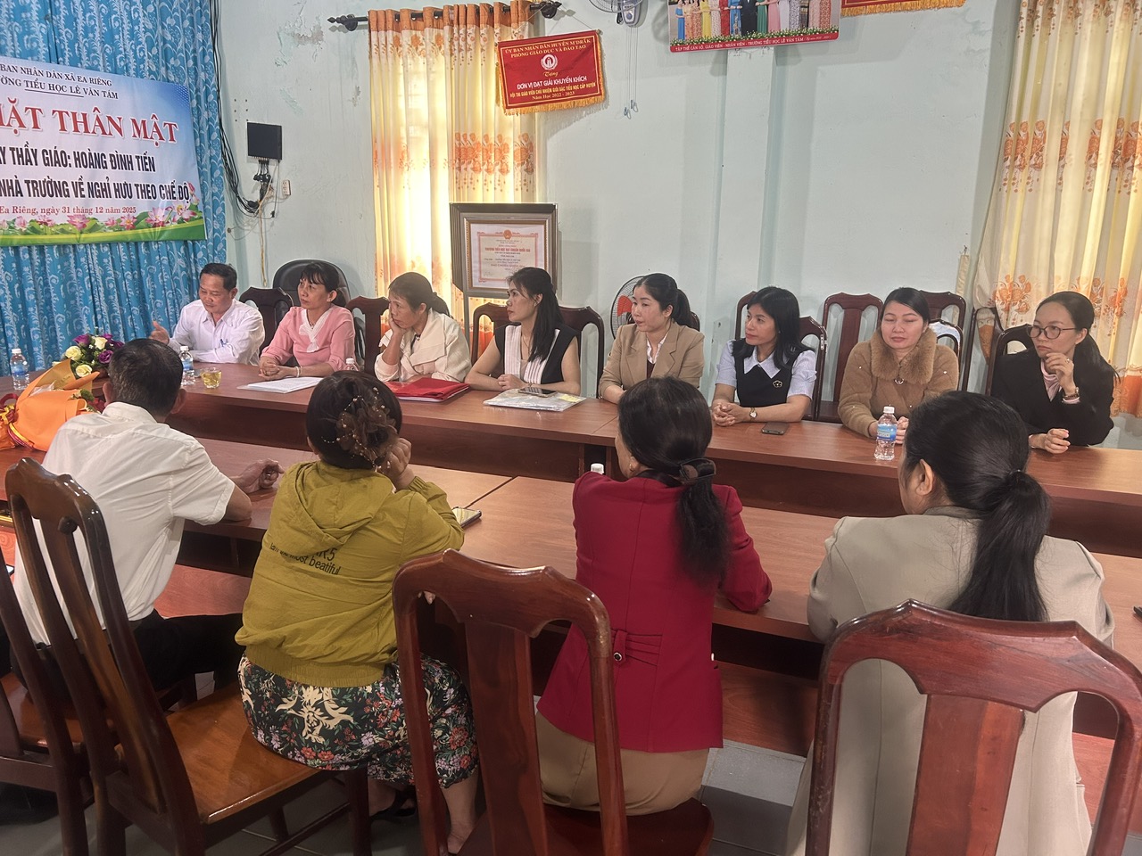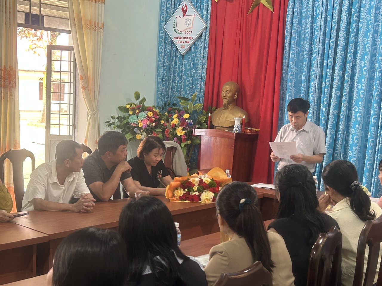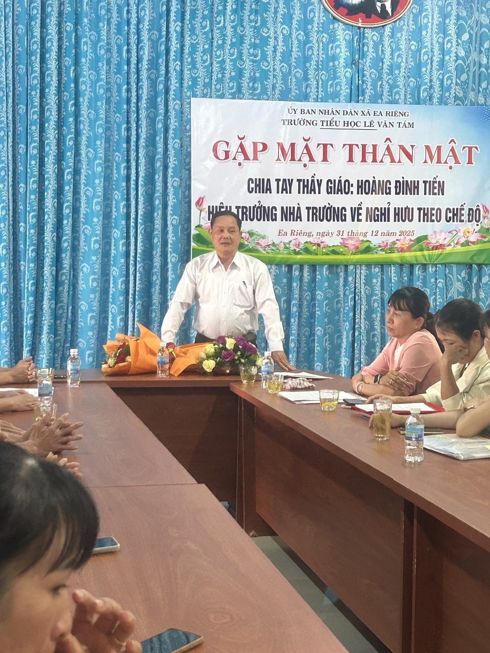 Trong giây phút chia tay, thầy đã có những lời chia sẻ chân thành, đầy xúc động. Giọng nói ấm áp, đôi mắt rưng rưng, thầy bày tỏ lòng biết ơn với các cấp, sự gắn bó với mái trường và tình yêu thương vô bờ dành cho đồng nghiệp, học trò. Thầy nói, đây là sự khép lại một chặng đường, nhưng trái tim thầy sẽ mãi ở lại với từng hàng cây, góc sân, và những thế hệ tương lai của Trường TH Lê Văn Tám.