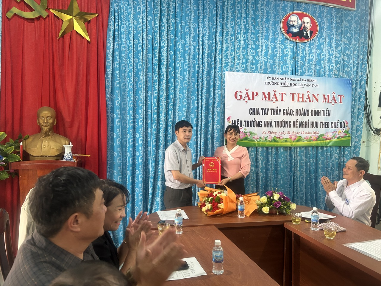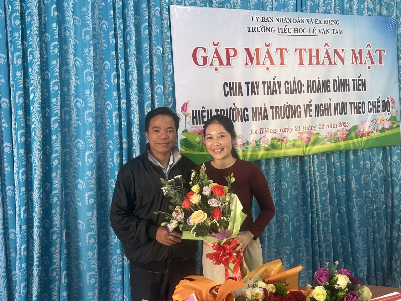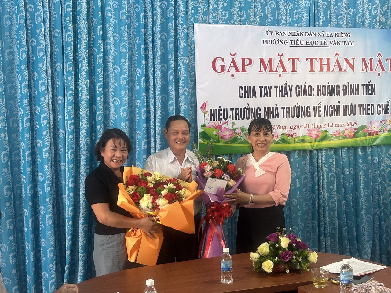 LÁ RỤNG VỀ CỘI, NGHĨA TÌNH CÒN MÃI: TRƯỜNG TH LÊ VĂN TÁM TRÂN TRỌNG CHIA TAY THẦY HIỆU TRƯỞNG VỀ NGHỈ HƯU