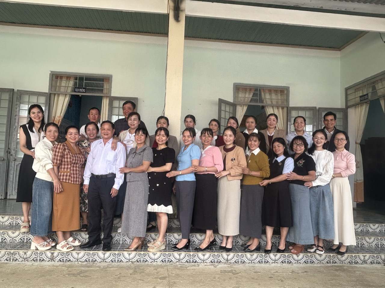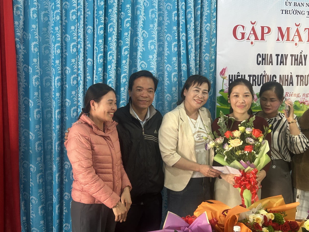 Buổi lễ diễn ra còn xúc động hơn nữa, khi trường cũng chào tạm biệt cô Nguyễn Thị Tuyết Nhung chuyển về một ngôi trường mới để công tác. Cô là một trong những giáo viên tâm huyết, yêu nghề, yêu trẻ. Trong mắt học trò, cô không chỉ dạy chữ, cô còn dạy cách sống tử tế, cách yêu thương và trân trọng từng khoảnh khắc. Cô chính là người thầy của trái tim, để lại dấu ấn êm đềm mà sâu sắc suốt cả hành trình trưởng thành của học trò. Chúc Cô thành công trên con đường “trồng người”.